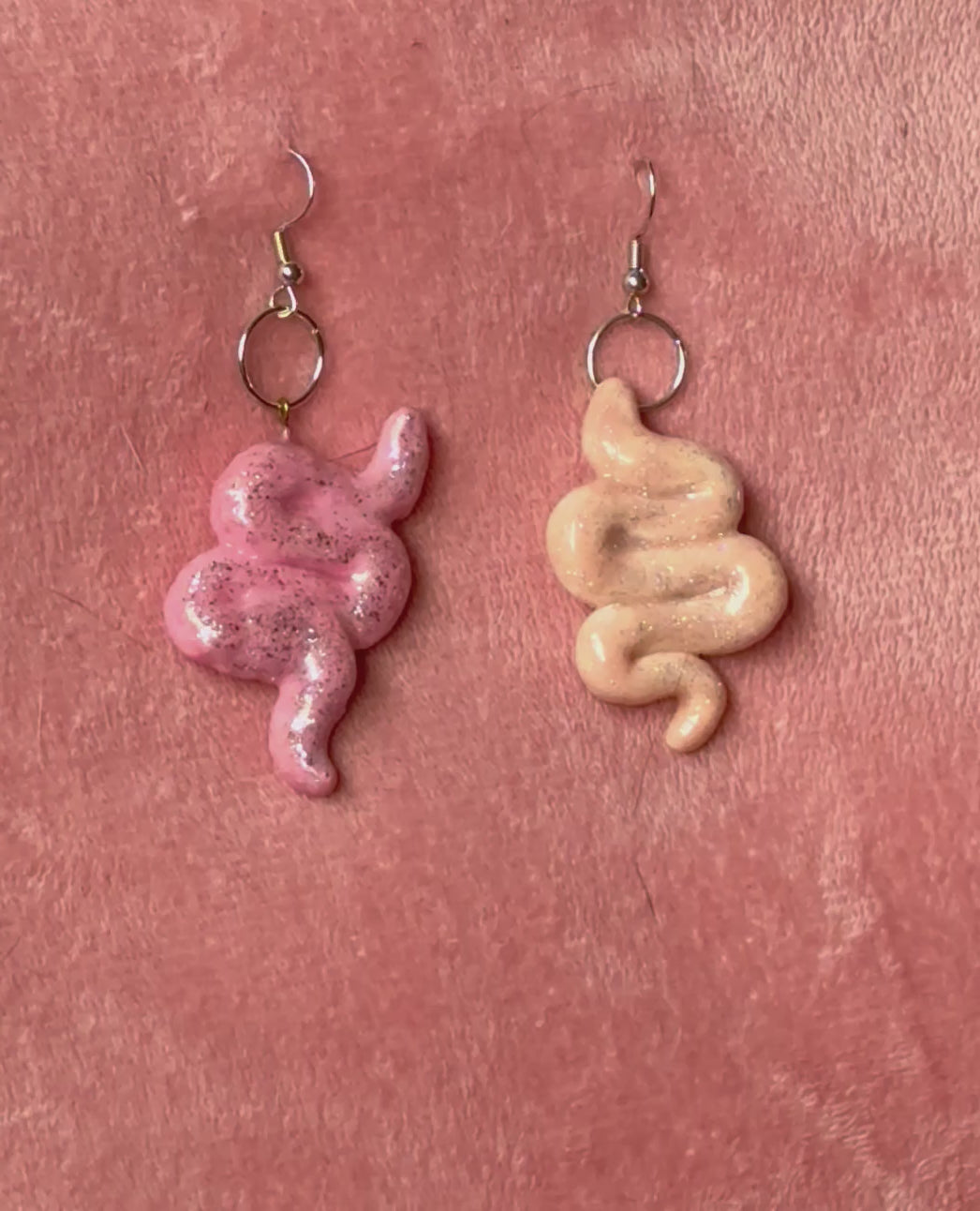 Sparkly worm earrings- one light pink and one dark pink